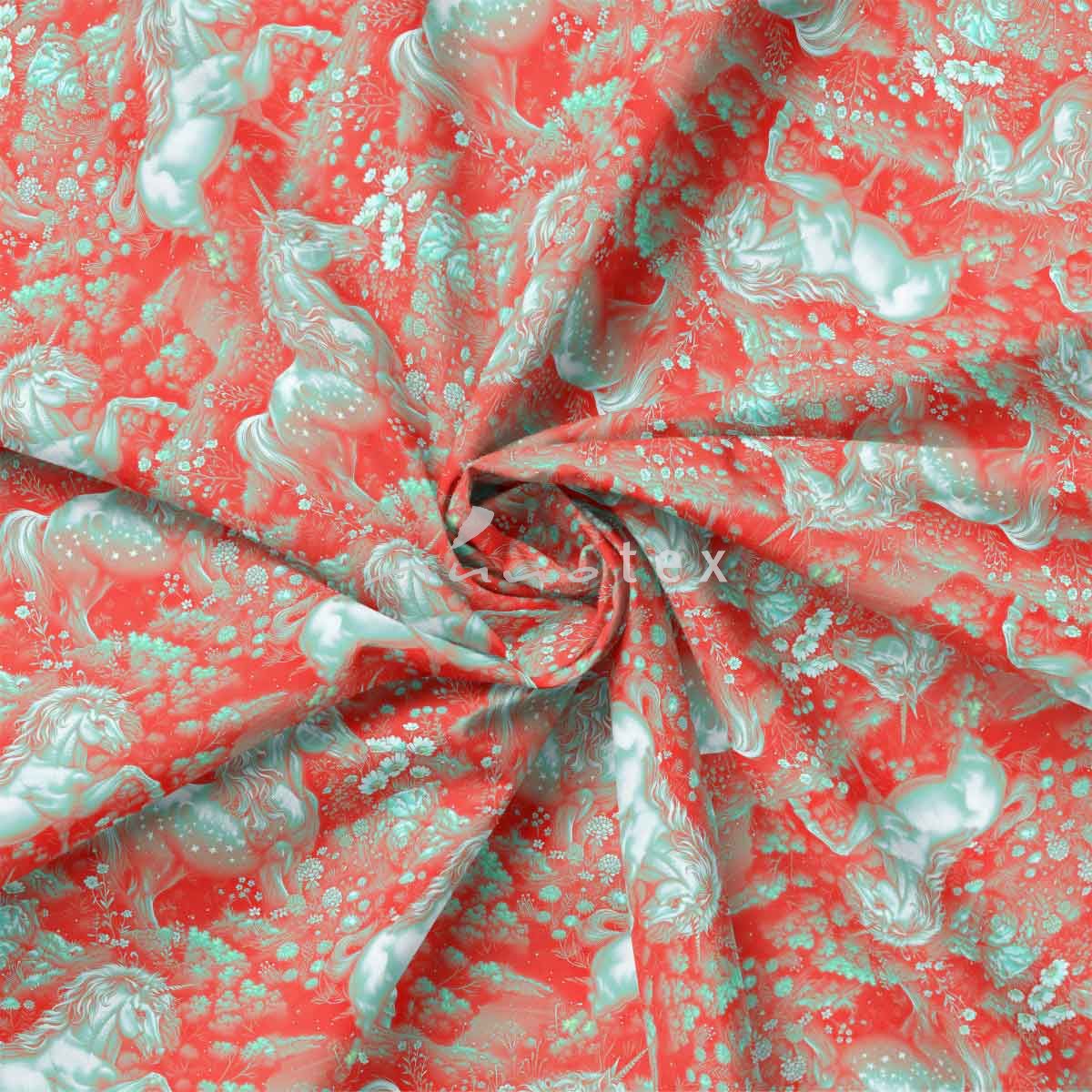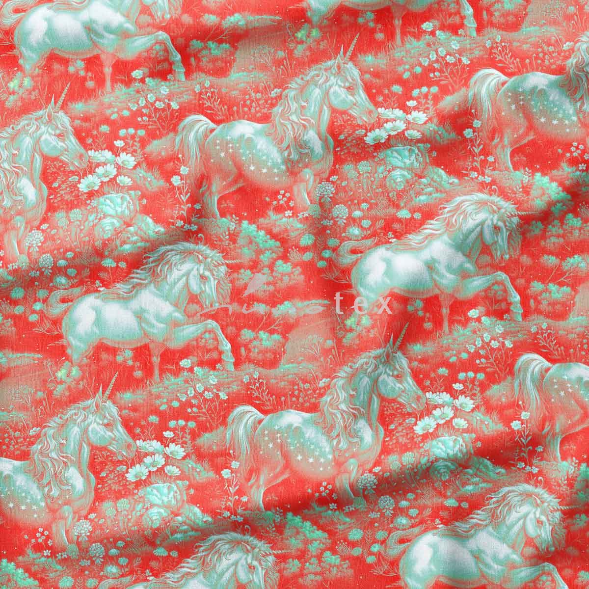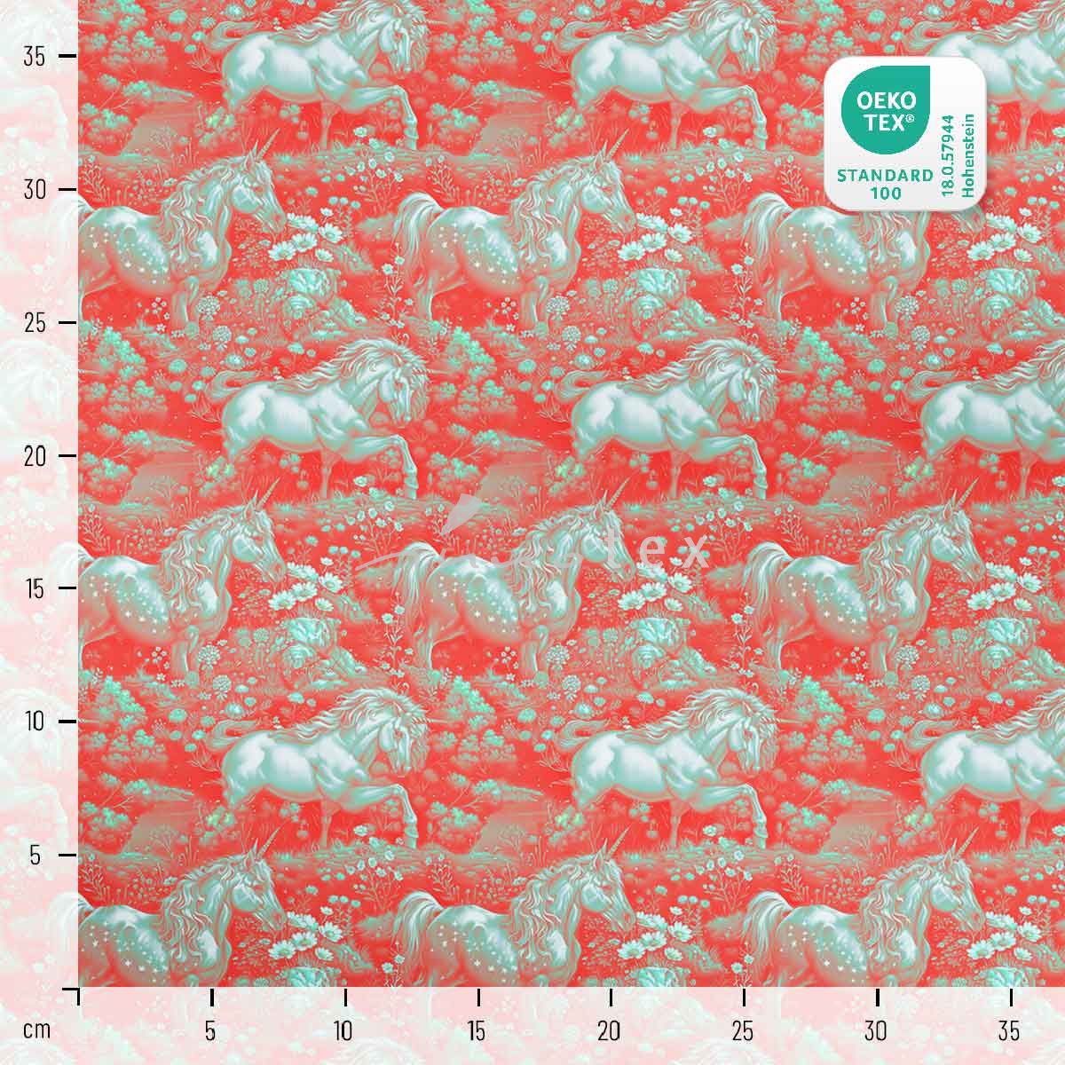 Kinderstoffe, Baumwolle, Jersey, Einhorn, rot